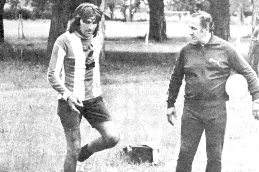 Juan Carlos Lorenzo junto al Loco Gatti, una de las estrellas que trajo a Santa Fe. ¿El lugar?, el Parque Garay, donde Unión iba a entrenar a veces en aquél 1975 inolvidable. Crédito: El Litoral.