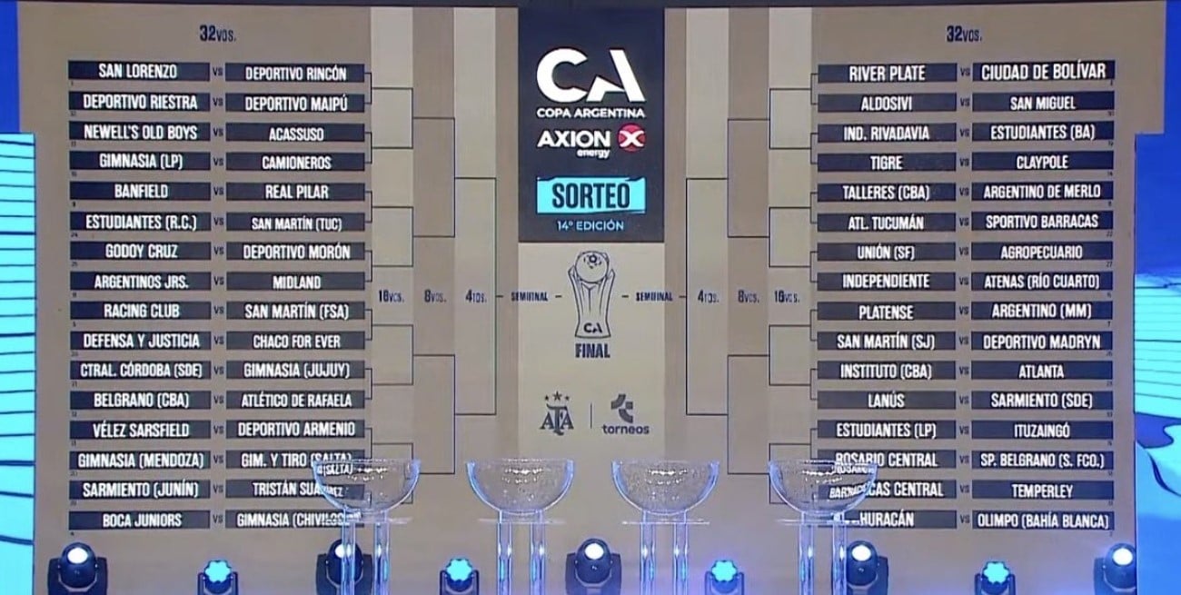 Por su parte, Boca hará su estreno ante Gimnasia de Chivilicoy; River se medirá con Ciudad de Bolívar; San Lorenzo ante Deportivo Rincón y Racing e Independiente harán lo propio con San Martín (F) y Atenas (RC), respectivamente. A su vez, Newell´s se enfrentará a Acassuso y Rosario Central a Sportivo Belgrano.