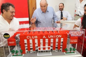 Tal como estaba anunciado, en la Sala de Conferencias del club Atlético Unión y el mismo día del cumpleaños 106 de la entidad rojiblanca, se presentó ayer la nueva maqueta del proyecto de remodelación que se estará llevando a cabo en el estadio 15 de Abril. Junto al presidente Luis Spahn, estuvieron presentes: Gustavo Pizzico, de Juguetería Pizzico; Guillermo Nemirosky, representante de Rasti; y Horacio Pellegrini, de la firma Astori.