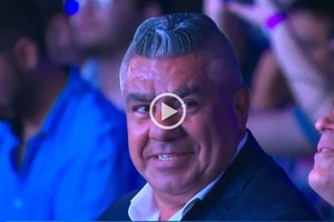 Las cámaras apuntaron al Chiqui cuando se descubrió la bolilla que correspondía a Barracas y pareció lamentarlo, con una sonrisa: "La p. madre", se alcanza al leer de sus labios.