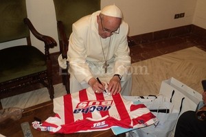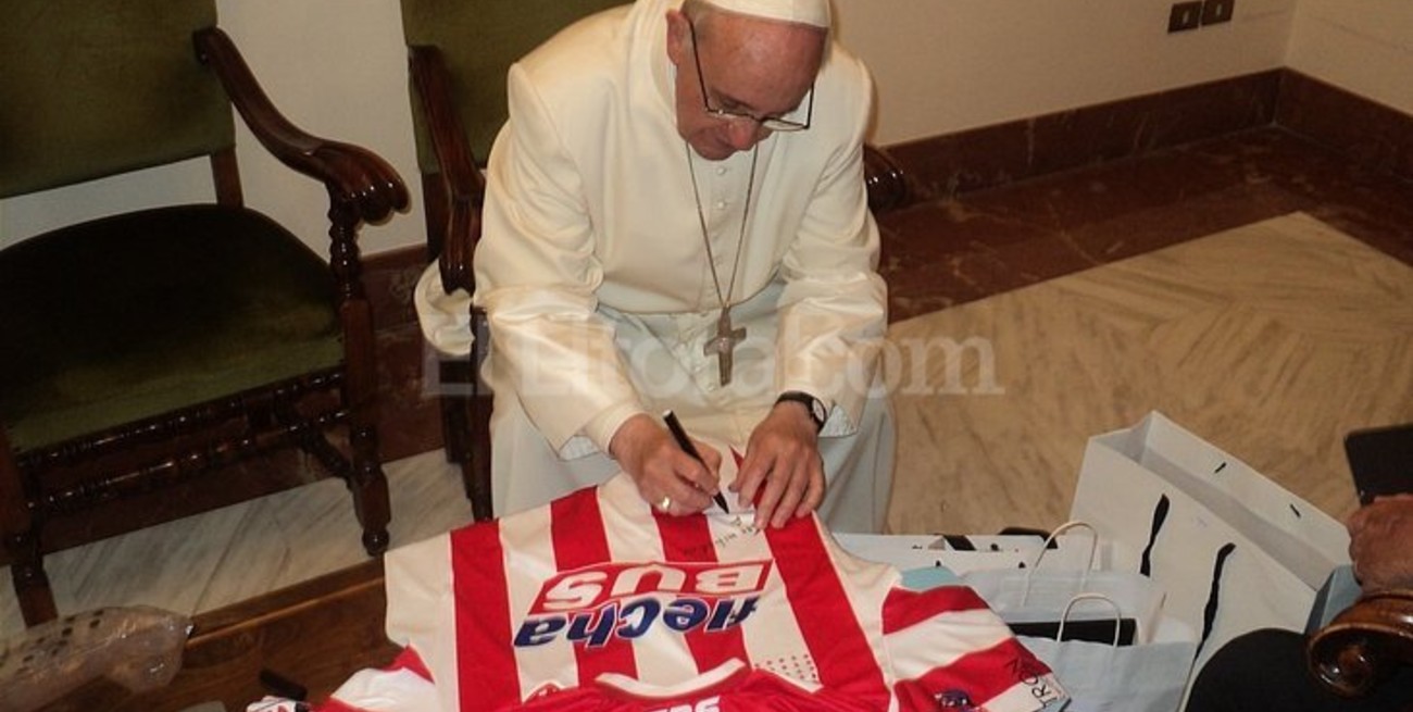 Así, desde su asunción, el Sumo Pontífice recibió la camiseta tatengue para sumar a su colección de indumentarias de clubes de fútbol junto a las del Inter, Barcelona, San Lorenzo y Newell’s. (Prensa CAU)