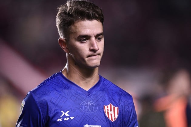 ¡A cambiar la cara!. El gesto de preocupación de Franco Calderón con la camiseta de Unión. En las últimas horas, hubo un "giro total", algo se destrabó y empezó a entrenar con normalidad. El DT fue notificado por la directiva que "es jugador del club y lo puede utilizar". Crédito: Matías Nápoli