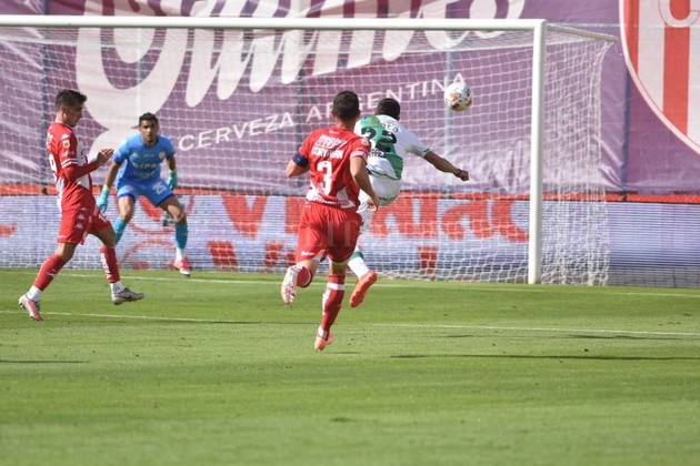 A los 30, la jugada más peligrosa de la etapa inicial: desborde de Galoppo por derecha y Pons, casi cayéndose, cabeceó la pelota que se fue muy cerca del palo izquierdo del 1 “tatengue”.