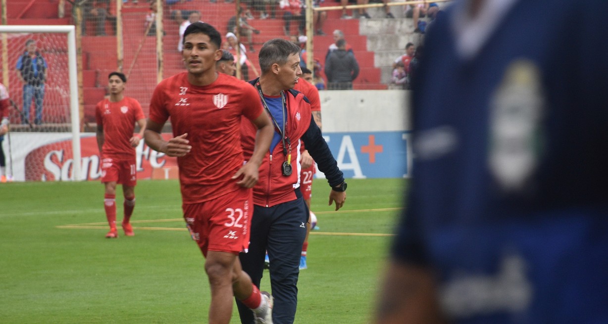 Paz y su entrada en calor durante el último partido ante el Lobo en Santa Fe. Crédito: Flavio Raina