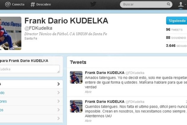 Al anoticiarse de la decisión de Unión de no renovar su contrato como director técnico, Frank Kudelka publicó un twet a la 1 de la madrugada de hoy en el que expresó: "Amados tatengues, yo no decidí esto, sólo me queda respetarlo. Me enteré de igual forma que ustedes. Mañana hablaré para que sepan mi verdad".