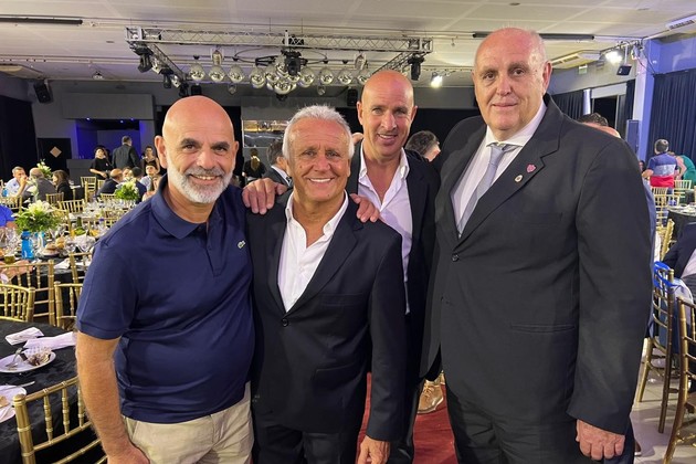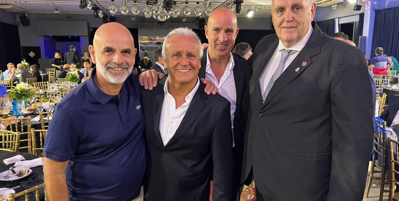 Un tatengue de ley. Miguel Torres Del Sel junto a Luis Spahn, Edgardo Zin y Marcelo Piazza en la noche de la Fiesta del Deporte que auspició El Litoral. El ex MIDACHI, por estas horas en Miami, recibirá el ofrecimiento político del actual presidente.