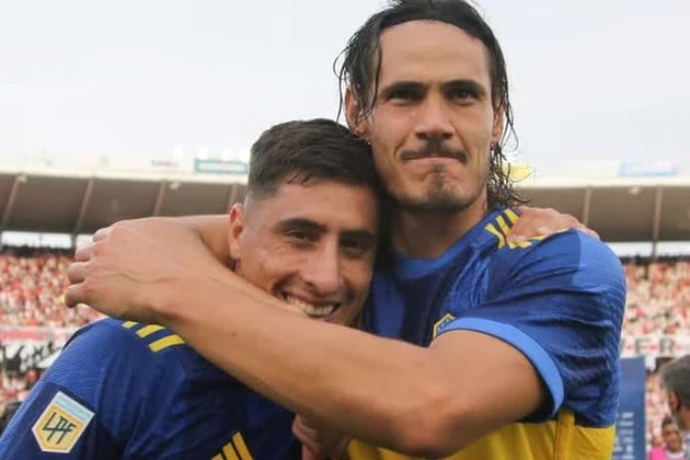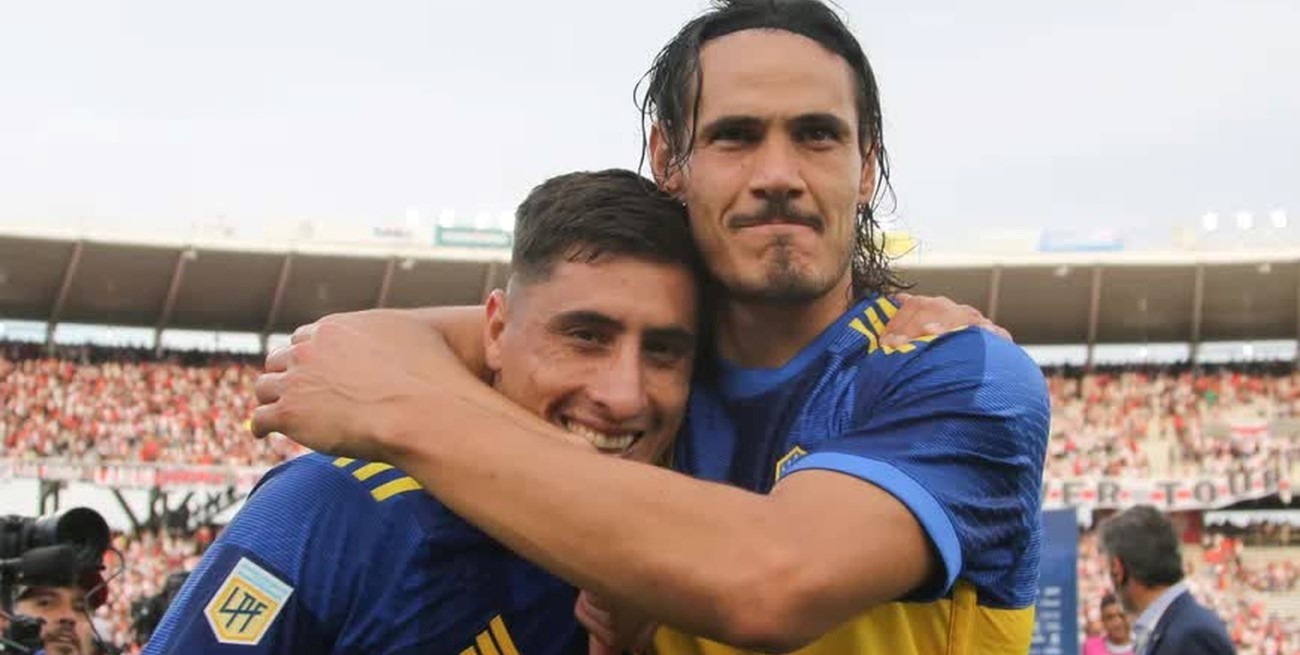 Uno sí, el otro no. El festejo de los dos goleadores de Boca, Merentiel y Cavani. El ex Defensa se pierde el cruce del miércoles 20 contra Unión en La Bombonera.