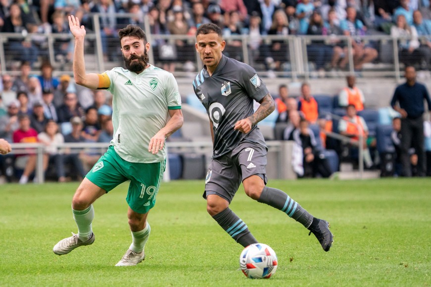 Franco Fragapane con la camiseta del Minnesota United. Crédito: Matt Blewett-USA TODAY Sports