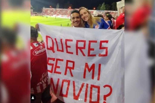 En las tribunas del estadio ubicado en la Avenida López y Planes se vivió un momento se suma ternura. A los 10 minutos del segundo tiempo, el “Loco” Álvez abrió el marcador y con su grito de gol de fondo, la que abrió una bandera con un emotivo mensaje fue Aylin Mergen. “¿Querés ser mi novio?”, se podía leer en aquel trapo que no estaba colgado, porque era para “Pepi” Gaitan, su compañero de cancha. El acto de amor quedó retratado en una foto que se tomaron los dos y rápidamente se volvió viral en las redes sociales.