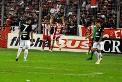 Antes de los dos minutos Mauro Pittón fue a apretar a Ignacio Arce y alcanzó a pellizcar la pelota que se fue muy cerca del palo izquierdo del arquero local.