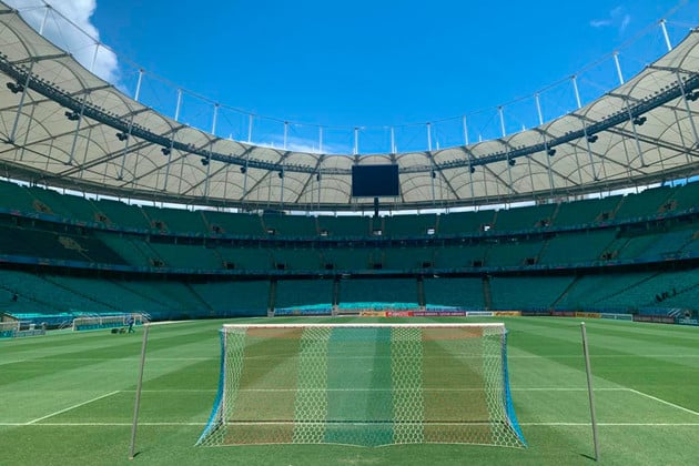 El Arena Fonte Nova será el escenario del duelo por Copa Sudamericana y mientras se espera por el inicio del partido, se trabaja intensamente para que todo luzca correctamente.