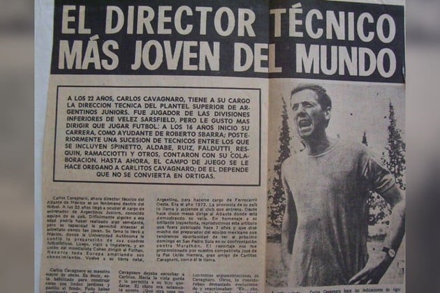 Es una historia muy particular la de Carlos Cavagnaro. ¡A los 16 años empezó su carrera como ayudante de campo de Roberto Sbarra! No sólo se nutrió de ese ex volante central de Estudiantes, que llegó a jugar en la selección nacional, sino que también tuvo otros "maestros" adecuados para aquélla edad juvenil, casi de adolescente. Victorio Spinetto y Roberto Resquín fueron dos ejemplos. Justamente, Resquín -que había dirigido a Unión en sus primeros pasos en la A luego del ascenso del 1966- era el entrenador de Argentinos Juniors cuando se fue del club y dejó el cargo vacante. Cavagnaro tenía 22 años en ese entonces y le dieron el equipo. Y el 6 de abril de 1969, tres días antes de cumplir 23, tuvo que venir a Santa Fe para enfrentar a Unión.