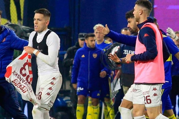Eso provocó la inmediata reacción de los jugadores de Boca, en especial de Luis Advíncula, que saltó desde el banco de los suplentes y tuvo que ser frenado por sus compañeros.
