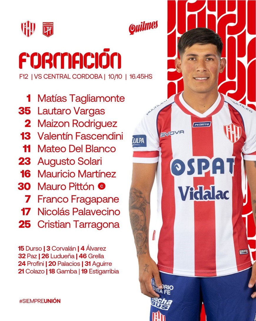 Los posibles titulares serían: Matías Tagliamonte; Lautaro Vargas, Maizon Rodríguez, Valentín Fascendini y Mateo Del Blanco; Augusto Solari, Mauro Pittón, Mauricio Martínez y Franco Fragapane; Nicolás Palavecino; y Cristian Tarragona.