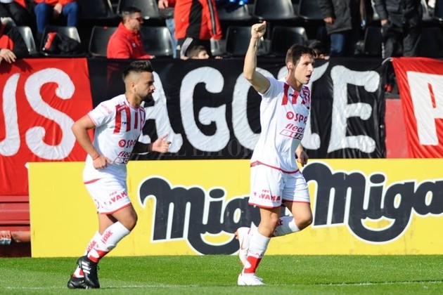 El gol del cordobés llegó a los 11 del primer tiempo luego de un preciso centro de Damián Martínez y un certero cabezazo del goleador rojiblanco.