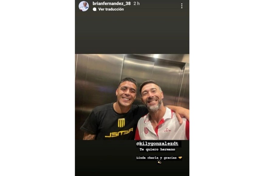 Una sorpresa tuvo el plantel de Unión, puntualmente el Kily González, al recibir en el hotel la visita de Brian Fernández. El actual delantero de Almirante Brown, que este domingo recibía en su estadio la visita de Mitre de Santiago del Estero en el Fragata Sarmiento de Isidro Casanovas, estuvo charlando largo y tendido con el actual entrenador de Unión. Luego, el ex delantero de Colón posteó una foto y agradeció al técnico tatengue por la charla. “Te quiero hermano. Linda charla y gracias”, expresó Brian Fernández en sus redes sociales.