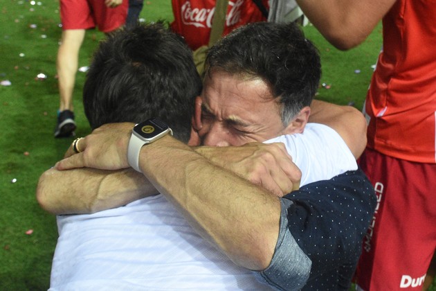 ¿Sigue el "Kily" en el Tate?. Después del gran festejo por haberse salvado del descenso, el "Kily" González se juntó con el presidente rojiblanco para empezar a diagramar el 2024, cuya temporada arrancará el 28 de enero. Crédito: Mauricio Garín