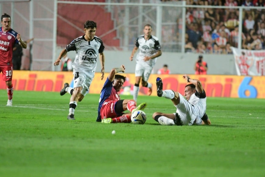 Lautaro Carrera (en contra) pone a Unión 2 a 0 frente a Gimnasia (Mendoza).