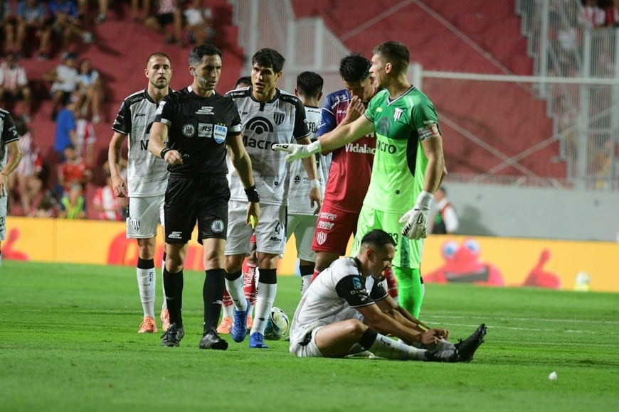 Franco Saavedra (G) recibió una tarjeta amarilla por una falta contra Lautaro Vargas (U). Decisión final de Nazareno Arasa: tarjeta roja para Saavedra tras la revisión del VAR.