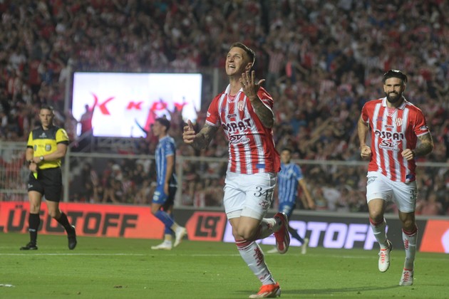 El festejo de Franco Pardo, otra de las grandes revelaciones de Unión, perseguido por Orsini, cuya ausencia se hará notoria ante los santiagueños. Crédito: Manuel Fabatía