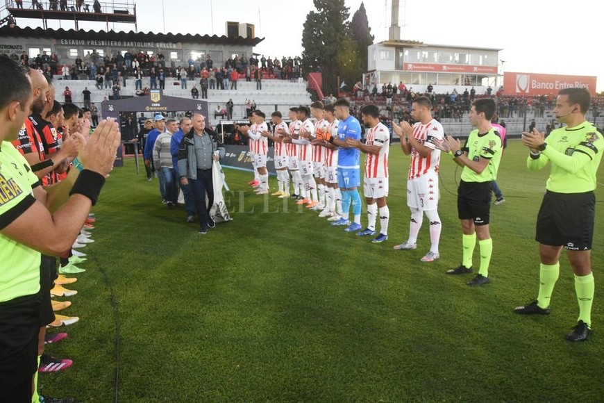 Como ocurre esta semana con todos los partidos de la octava fecha de la Copa de la Liga, se le hizo un homenaje a los ex combatientes de Malvinas de Paraná. Ellos también participaron del saludo Fifa que es habitual entre los dos equipos, que lucieron sus atuendos tradicionales.