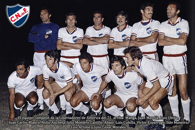La primera. Una de las formaciones del Nacional campeón de la Libertadores en 1971, entre los cuales aparece el argentino Luis Artime (agachado, el segundo desde la derecha).