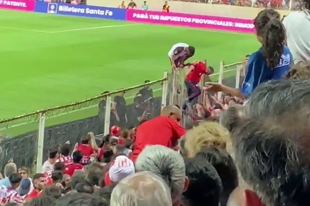 Fue apenas iniciado el segundo tiempo del encuentro. El portón que comunica el campo de juego con la tribuna, estaba cerrado con candado.