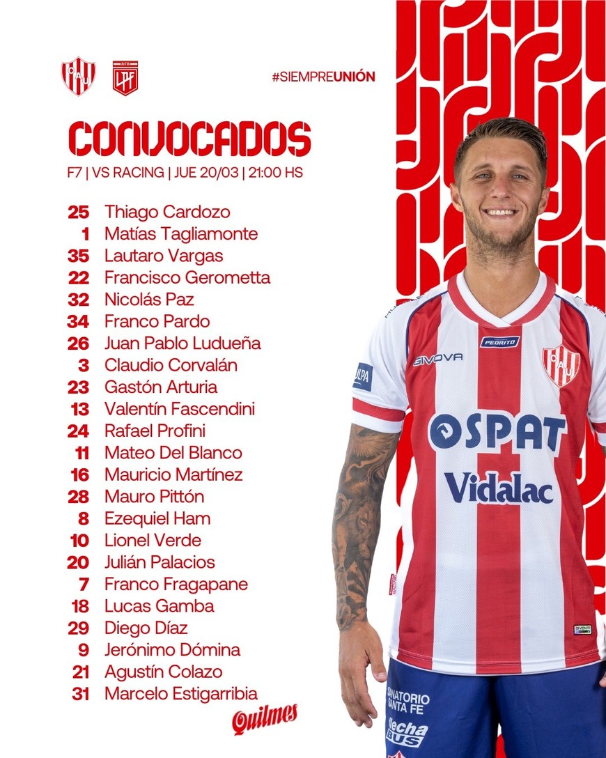 Cuesta creerlo, pero Unión está casi en igualdad de condiciones que el campeón de Sudamérica, Racing Club de Avellaneda. Con 6 fechas (más este partido adeudado de la Fecha 7) por jugar, los del Kily González sueñan con una racha ganadora que los ponga entre los clasificados a los Playoffs del Torneo Apertura.