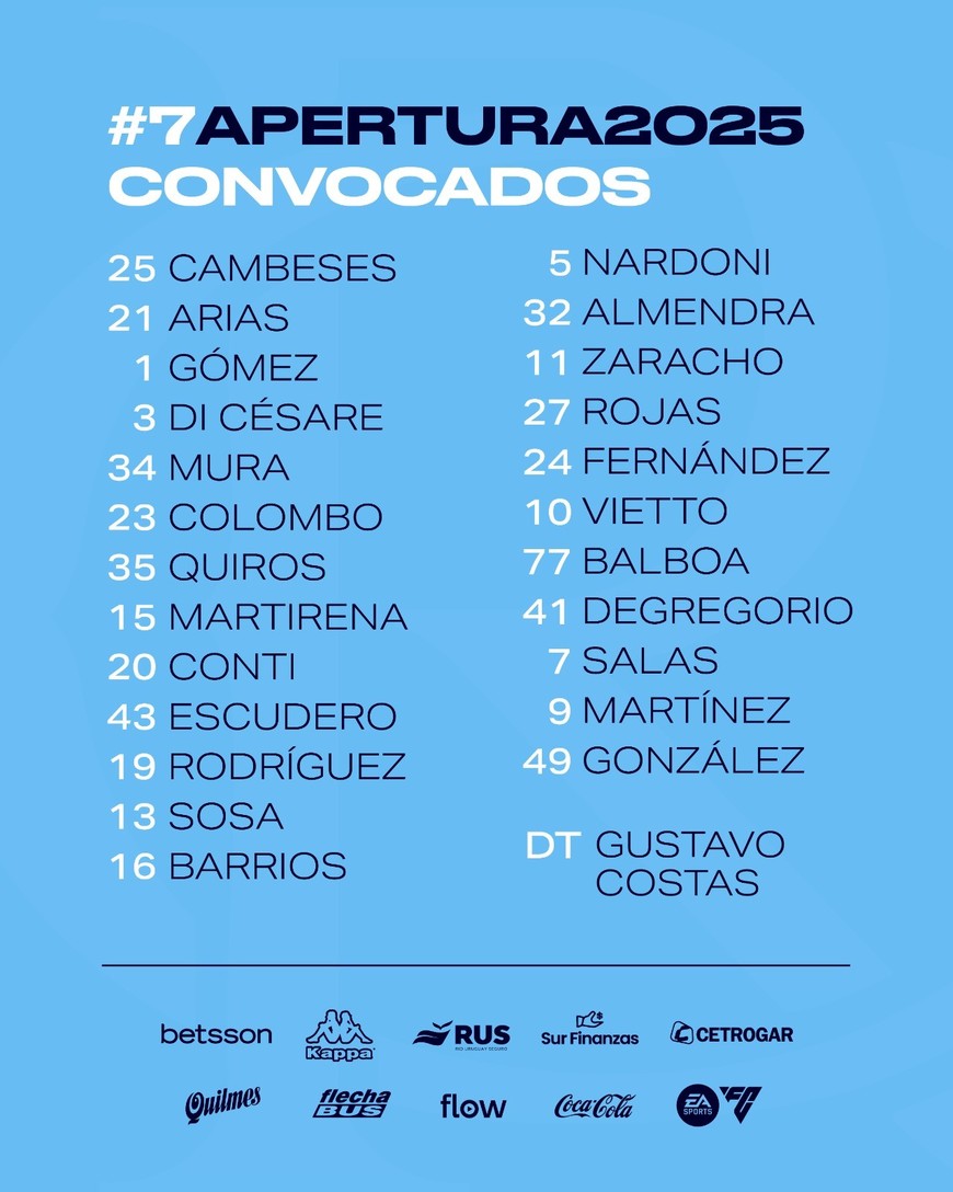 Sin sorpresas y un esquema parecido al que le gusta al Kily: línea de "5" con Colombo, Sosa y Quirós en el centro y por los costados, Martirena y Rojas. En el medio, la ex joya Tatengue Nardoni y Barrios. Y adelante, Vietto, Salas y Maravilla Martínez.