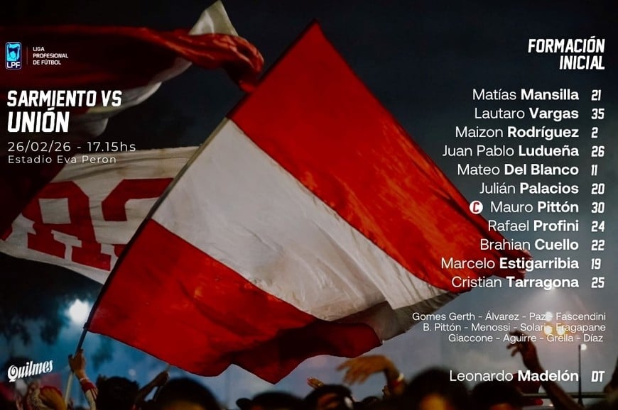 Unión formaría con Mansilla; Vargas, Maizon Rodríguez, Ludueña y Del Blanco; Palacios, Mauro Pittón, Profini y Cuello; Estigarribia y Tarragona. La novedad sería el ingreso de Brahian Cuello por Fragapane, en lo que sería su debut como titular.