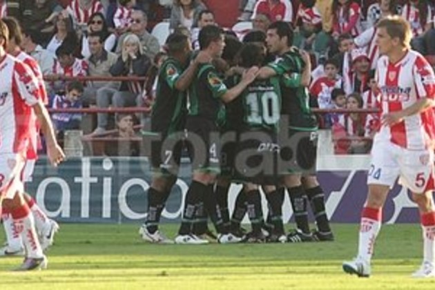 A esta altura la visita ya había emparejado las acciones y el encuentro era de ida y vuelta, hasta que a los 18 los sanjuaninos se pusieron en ventaja: una serie de errores en la salida de la última línea rojiblanca terminó con un despeje al borde del área, donde apareció Adrián Alderete que, a la carrera, sacó un formidable derechazo que se metió en el palo derecho de Limia para poner el 0-1.