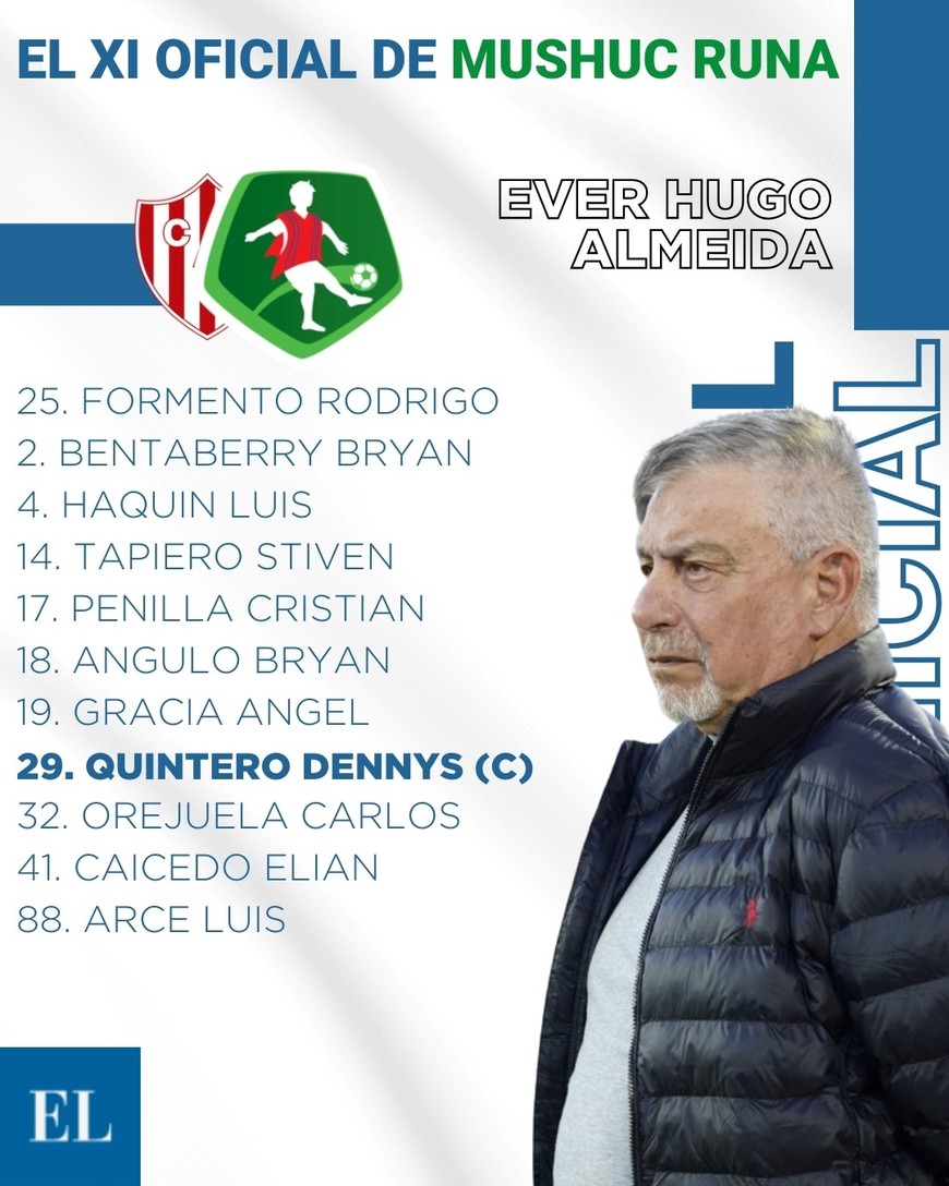 Miércoles 23.0422:35 El XI oficial de Mushuc Runa