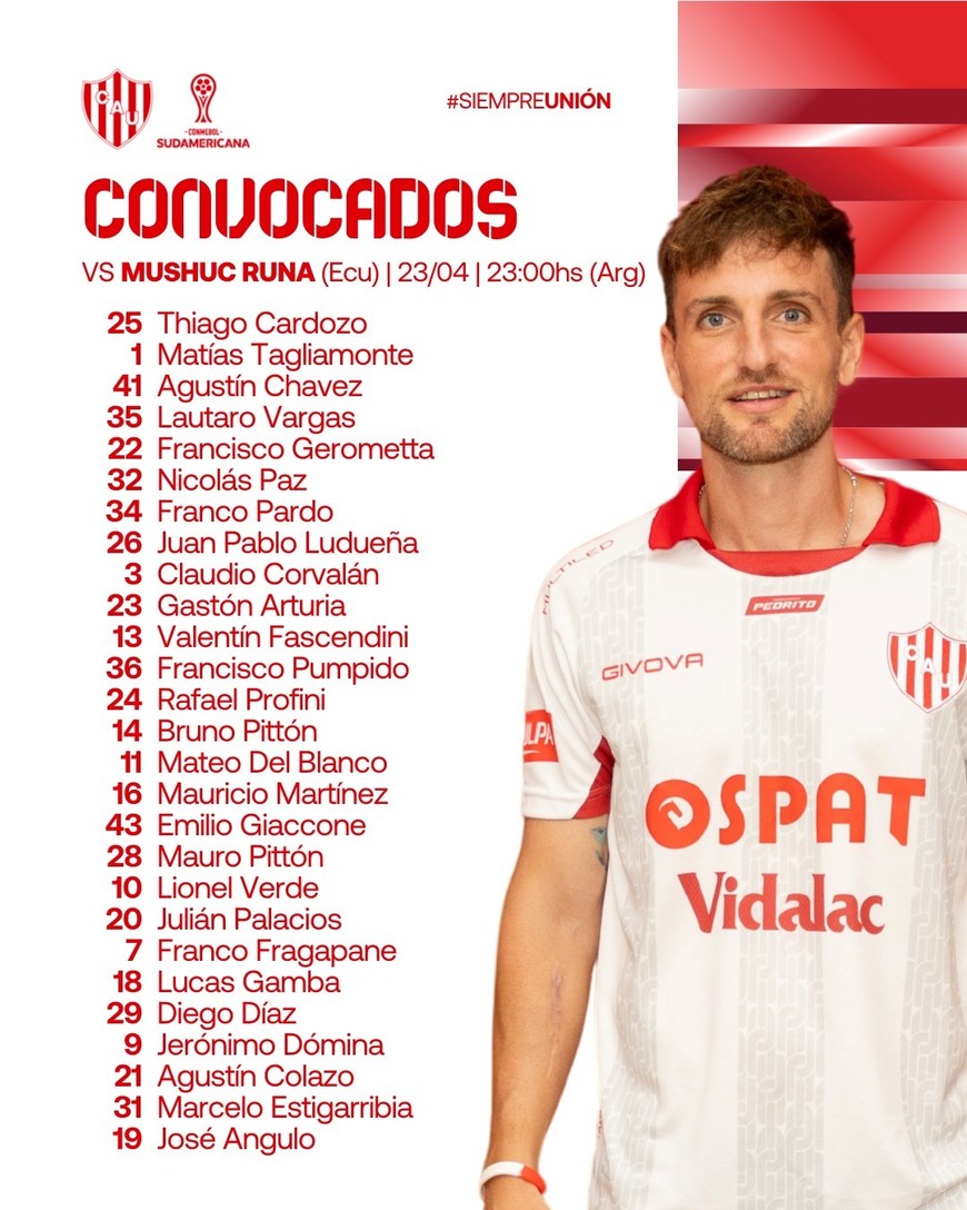 Miércoles 23.0420:56 La lista de convocados de Unión