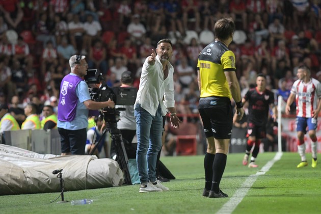 El entrenador de Unión no habló en conferencia porque fue expulsado. Crédito: Manuel Fabatía
