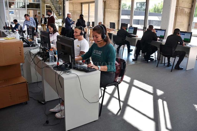 La pandemia reconvirtió la fisonomía de la planta baja de El Molino Fábrica Cultural. Ese espacio otrora lúdico de talleres para que los niños jueguen y produzcan objetos con telas, cartón, crayones y maderas, ahora es un call center donde trabajan a destajo unos 15 operadores en turnos rotativos. ¿Qué hacen? Recepcionar llamadas de toda la provincia con eventuales denuncias por violaciones —por parte de particulares— del aislamiento obligatorio.