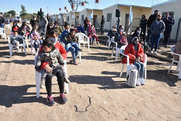 Se trata de personas que habitaban la zona en ranchos de chapa y cartón. Encabezó el acto el gobernador Perotti, junto al intendente Jatón y la ministra Frana, entre otros. Duro discurso del referente de Los Sin Techo, José Luis Ambrosino.