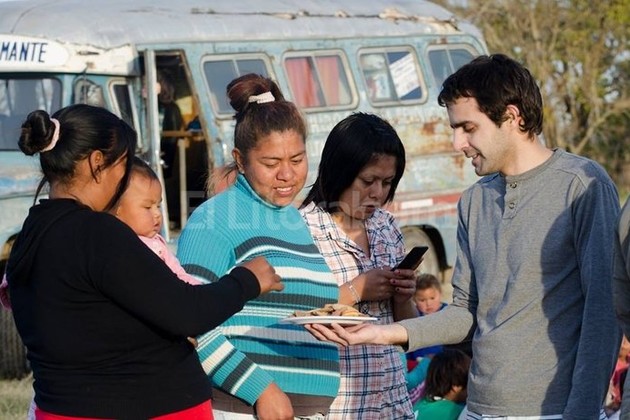 Luego se organizó la chocolatada, con la ayuda de las madres y abuelas mocovíes. Sentados en un enorme círculo, los chicos recibieron chocolate caliente y galletitas dulces. También los adultos se sirvieron, y así formaron parte de ese momento de fraterna comunión. Al final, llegó la entrega de “sorpresas”: una de las voluntarias coordinó la entrega de bolsitas con chupetines y caramelos a cada uno de los pequeños.