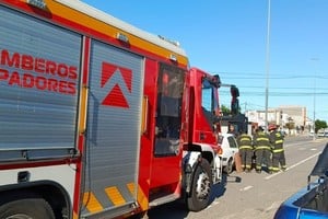 Tras el hecho, efectivos de la Comisaría 6ta., solicitaron el apoyo de los Bomberos Zapadores, quienes trabajaron en conjunto para liberar al ciclista atrapado entre los vidrios del vehículo.
