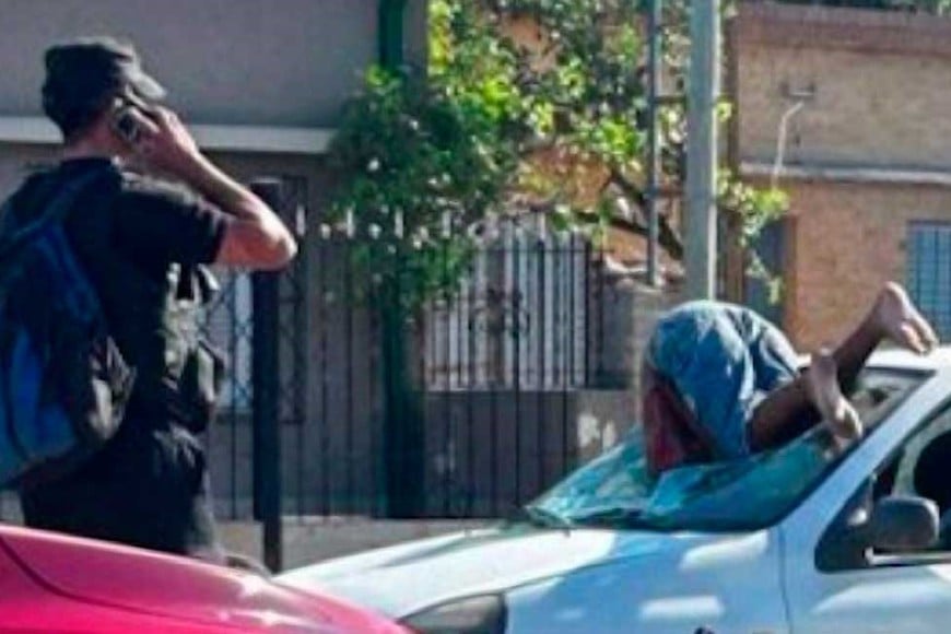El joven fue impactado por un Renault Clio, cuyo golpe lo dejó atrapado en el parabrisas del auto.