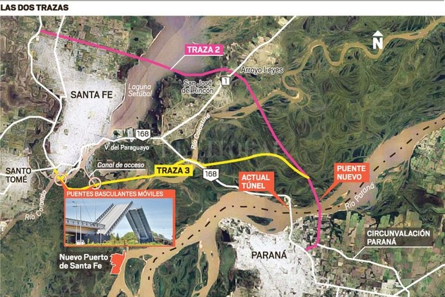Aunque la Dirección Nacional de Vialidad aún no emitió dictamen definitivo sobre qué traza del Puente Santa Fe - Paraná se licitará en septiembre, la consultora ATEC que tuvo a cargo los estudios ya se expidió y el 1° de marzo le entregó el informe comparativo. Lo hizo en base a las dos trazas que -en octubre del año pasado, en una reunión que se realizó en la sede local de Vialidad- se consensuaron estudiar en profundidad: la N° 2, que cruza por arriba de San José del Rincón y desemboca en el norte de Santa Fe; y la N° 3, que se acerca al emplazamiento del futuro puerto y llega al sur de la ciudad. (Ver mapa)