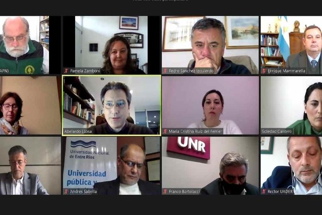 Por este motivo, del acto virtual también participaron los rectores Carlos Greco de UNSAM, Franco Bartolacci de UNR, Andrés Sabella de UNER y Aníbal Sattler de UADER. Cabe señalar que, además, fueron parte del encuentro Abelardo Llosa, director nacional de Planificación y Ordenamiento Ambiental del Territorio. Ministerio Ambiente y Desarrollo Sostenible; Daniel Somma, director de Parques Nacionales; María Soledad Cantero, titular de la Unidad Gabinete de Asesores del Ministerio de Ambiente; y otras autoridades nacionales y universitarias.