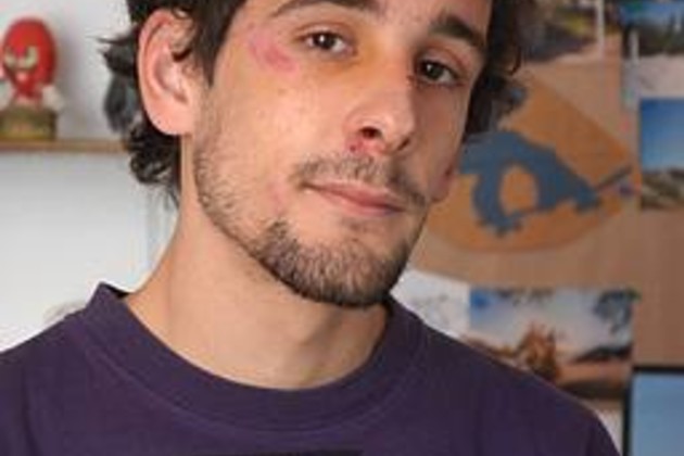 “En el camino el placero nos grita que no podemos andar en skate en la plaza, pero nosotros no teníamos esa intención, así que seguimos nuestro camino. Entonces nos corrió y me tiró al piso’’, continúa.