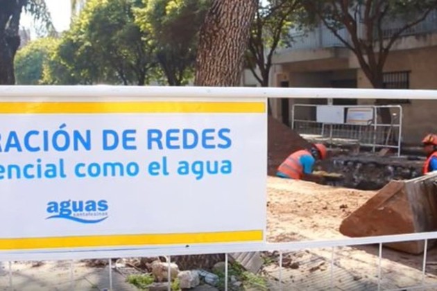 Operarios de Aguas Santafesinas trabajan este viernes en una zona de la ciudad.