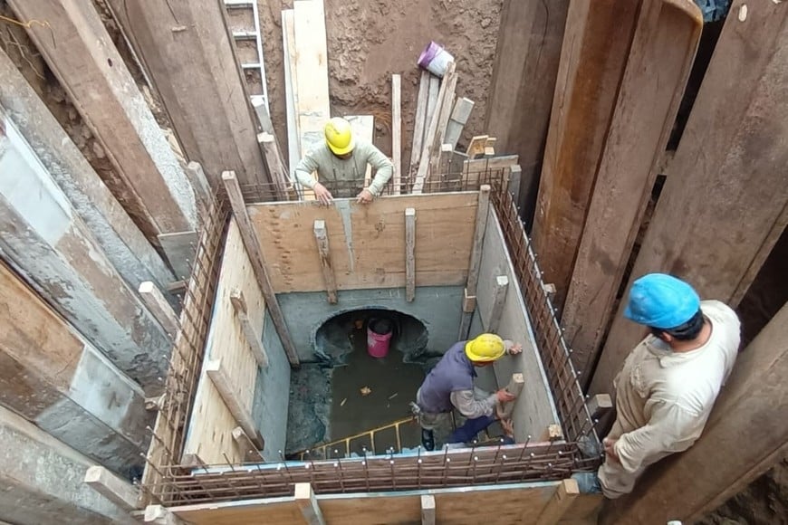 Actualmente se inició la construcción de la nueva cámara de cinco metros de altura prevista en el plan de obras, que se ejecutará por etapas para reestablecer el circuito hidráulico definitivo.