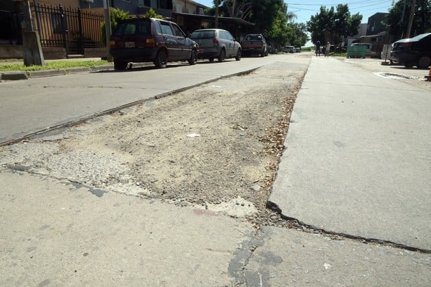 Se trata de una de las arterias principales del barrio FoNaVi en el que viven más de 10 mil vecinos. La reparación del pavimento de hormigón que fue abierto para renovar cañerías cedió y provocó grandes baches. Los vecinos deben caminar varias cuadras para tomar el colectivo.