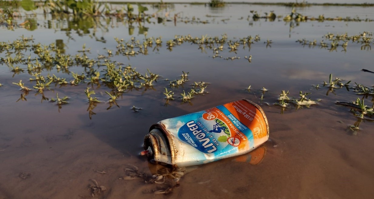 Pero también se pudo comprobar durante la visita al lugar la presencia de residuos en las islas, o al garete en los distintos cursos de agua: botellas, plásticos, bolsas, latas.