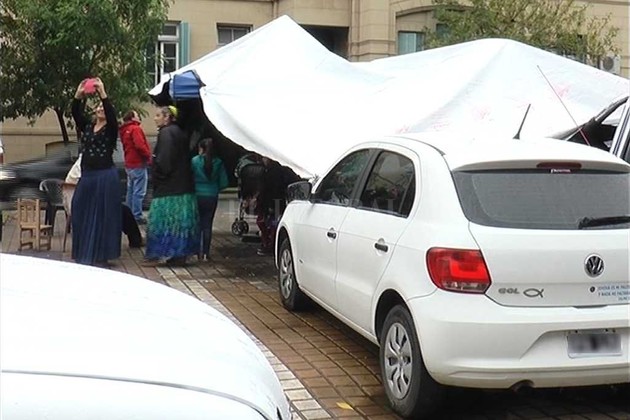 Es que hace ya tres días atrás arribaron gitanos de distintas ciudades del país para acompañar a dos miembros de esta comunidad —oriundos de la localidad de Videla— que están internados en el hospital. Uno es un padre que le donó a su hija un riñón. Y mientras el procedimiento quirúrgico se lleva a cabo, un nutrido grupo de familiares y amigos acampa frente al hospital, hoy bajo la llovizna.