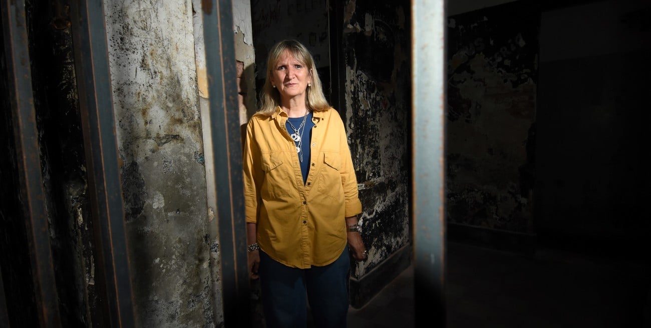 Anatilde Bugna en lo que fue su celda, en el centro clandestino de detención que funcionó en la Comisaría 4°. Foto: Mauricio Garín.
