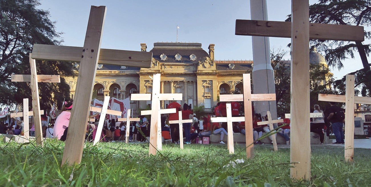 El pedido de justicia y reparación se mantuvo durante todo este tiempo frente a la Casa Gris. El Gobierno de Pullaro decidió acatar el fallo de la Corte e indemnizar a los damnificados.