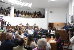 Las gradas estaban atiborradas de militantes y funcionarios de la actual gestión. "El Concejo se está quedando chico...", deslizó un cronista que disparaba de un lado hacia el otro apuntando a los protagonistas presentes, molesto por la incomodidad para realizar su trabajo. El intendente Emilio Jatón empezaba a dar su discurso de apertura de sesiones ordinarias del Concejo Municipal, "arropado" por los aplausos que bajaban, bajo la mirada atenta de propios y extraños.